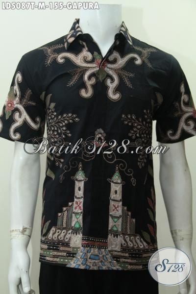 Hem Batik Hitam Modis Motif Gapura, Pakaian Batik Tulis Lengan Pendek Kwalitas Halus Dan Adem Nyaman Di Pakai Tiap Hari [LD5087T-M]