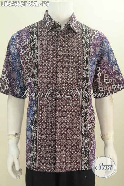 Hem Batik Istimewa Lengan Pendek Ukuran Jumbo, Produk Pakaian Batik Khusus Lelaki Gemuk Motif Mewah Proses Cap Tulis Harga Terjangkau [LD6456CT-XXL]