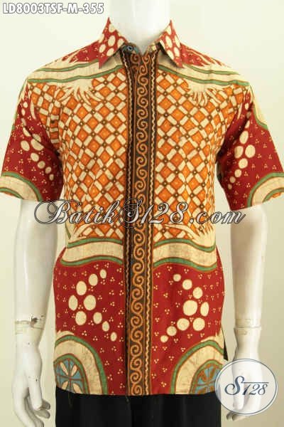 Hem Batik Istimewa Untuk Pria Muda, Baju Batik Berkelas Motif Unik Model Lengan Pendek Proses Tulis Soga Daleman Full Furing [LD8003TSF-M]