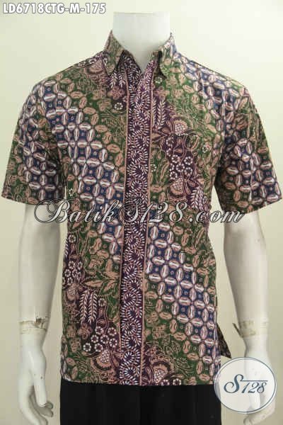 Hem Batik Jawa Tengah Motif Terkini Berbahan Halus Proses Cap Tulis Soga Model Lengan Pendek Dengan Desain Keren Tampil Makin Beken [LD6718CTG-M]