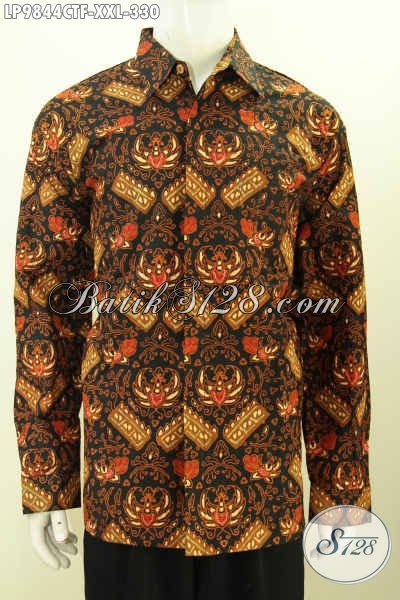 Hem Batik Jumbo 3L, Baju Batik Klasik Lengan Panjang Pakai Furing Spesial Untuk Lelaki Gemuk, Bahan Adem Proses Cap Tulis 330K [LP9844CTF-XXL]