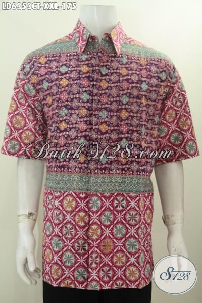 Hem Batik Jumbo Buatan Solo, Kemeja Batik Keren Bahan Adem Proses Cap Tulis Untuk Lelaki Gemuk Tampil Gaya Dan Keren [LD6353CT-XXL]