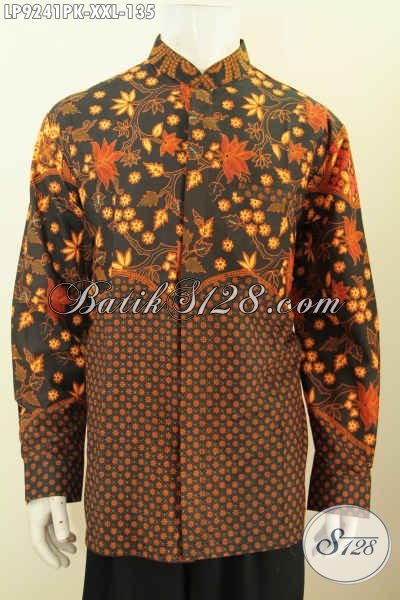 Hem Batik Jumbo Dual Motif, Kemeja Kerah Shanghai Lengan Panjang Spesial Buat Lelaki Gemuk Proses Printing Harga 135K [LP9241PK-XXL]