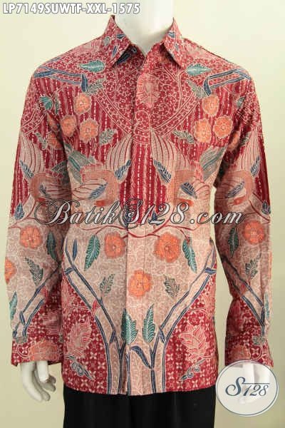 Hem Batik Jumbo Lengan Panjang Mewah, Baju Batik Pejabat Bahan Sutra Daleman Full Furing Exclusive Untuk pria Gemuk Ukuran 3L Motif Proses Tulis Tangan [LP7149SUWTF-XXL]