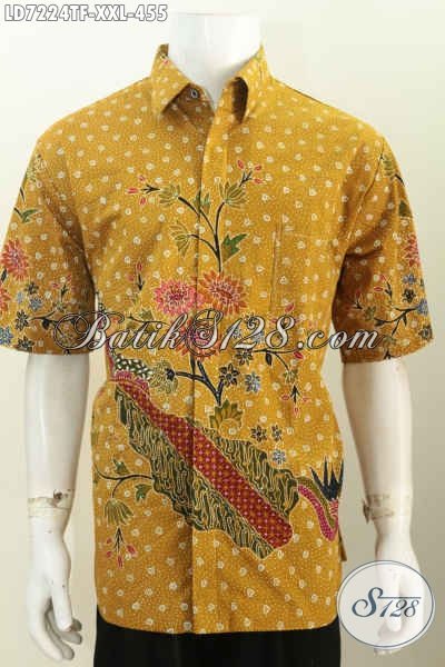 Hem Batik Jumbo Mewah Lengan Pendek Motif Mewah Full Tulis, Pakaian Batik Premium Buatan Solo Spesial Buat Lelaki Gemuk Terlihat Istimewa [LD7224TF-XXL]