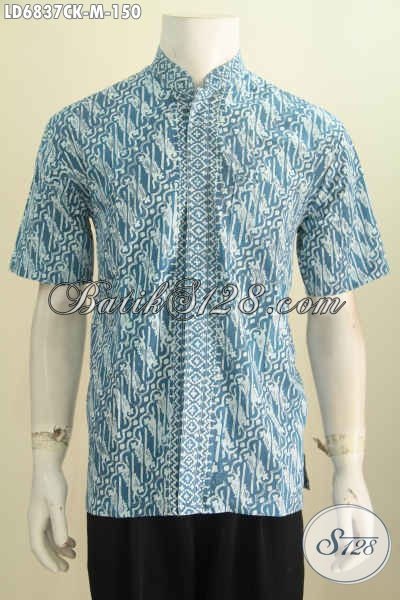 Hem Batik Keren Dan Mewah, Baju Batik Solo Halus Proses Cap Model Kerah Shanghai Ukuran M, Pas Buat Lelaki Muda [LD6837CK-M]