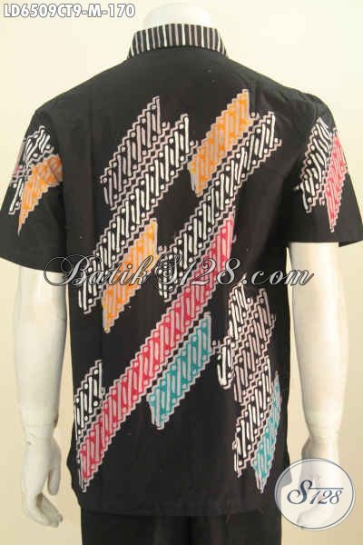 Hem Batik Keren Dari Solo, Pakaian Batik Halus Motif Kombinasi Dasar Hitam Elegan Model Lengan Pendek Proses Cap Tulis Harga 170K [LD6509CT-M]