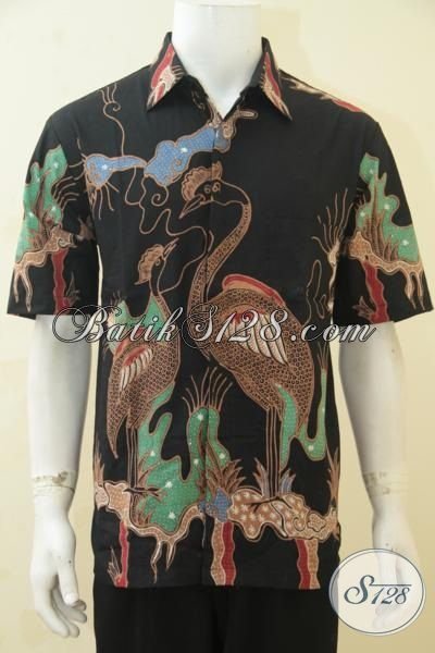Hem Batik Kerja Motif Burung Bangau, Pakaian Lengan Pendek Berbahan Batik Tulis Keren Bisa Untuk Santai Dan Fromal [LD4400T-L]