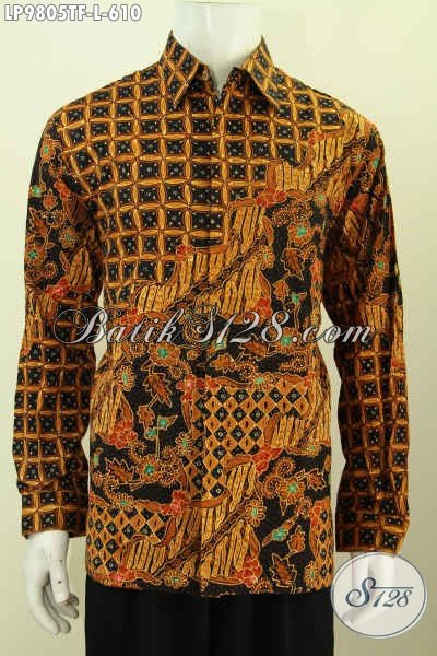Hem Batik Kerja Nan Elegan, Pakaian Batik Halus Mewah Model Lengan Panjang Pakai Furing, Tampil Ganteng Mempesona [LP9805TF-L]