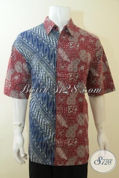 Hem Batik Kerja Pria Gemuk, Batik Dua Warna Terbaru Dari Solo, Pakaian Batik Lengan Pendek Kombinasi Dua Motif Ukuran Jumbo [LD4000CT-XXL]