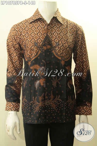 Hem Batik Kerja Pria Lengan Panjang Nan Berkelas, Produk Baju Batik Solo Elegan Istimewa Harga Terjangkau Motif Klasik Printing Cabut Hanya 148K [LP10785PB-S]