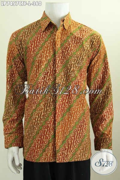 Hem Batik Kerja Terkini, Pakaian Batik Solo Berkelas Model Lengan Panjang Pakai Furing Untuk Penampilan Lebih Istimewa Proses Cap Tulis [LP7457CTF-L]