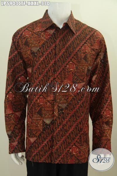Hem Batik Klasik Istimewa Kwalitas Premium, Baju Batik Halus Proses Cap Tulis Model Lengan Panjang Di Lengkapi Furing, Pakaian Batik Kerja Pria Super Gemuk Bahan Adem Nyaman Di Pakai Tiap Hari [LP5903CTF-XXXL]