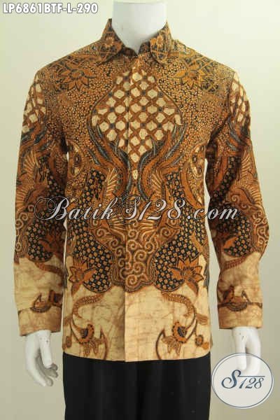 Hem Batik Klasik Lengan Panjang Size L, Bahan Adem Proses Kombinasi Tulis Daleman Pakai Furing Berkesan Mewah [LP6861BTF-L]