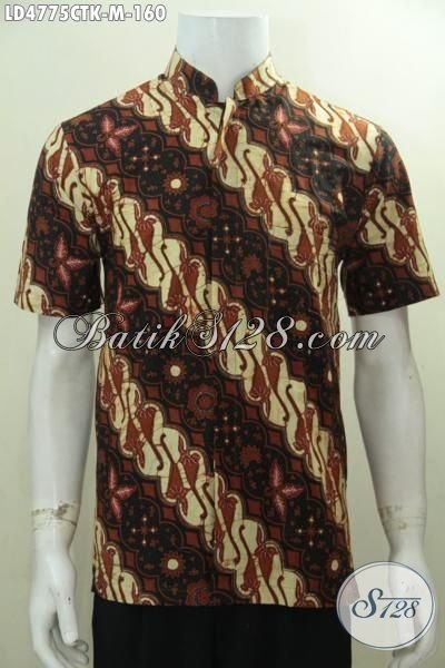 Hem Batik Klasik Model Kerah Shanghai, Busana Batik Lengan Pendek Motif Parang Halus Proses Cap Tulis Tampil Gagah Dan Menawan [LD4775CTK-M]