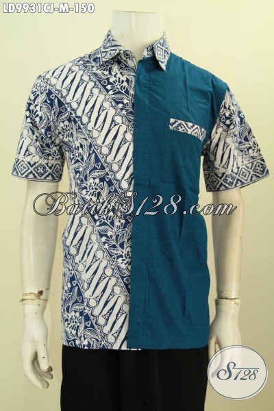 Hem Batik Klasik Model Kombinasi Kain Polos, Busana Batik Solo Lengan Pendek Elegan Dan Keren Proses Cap Untuk Tampil Tampan Menawan [LD9931CJ-M]