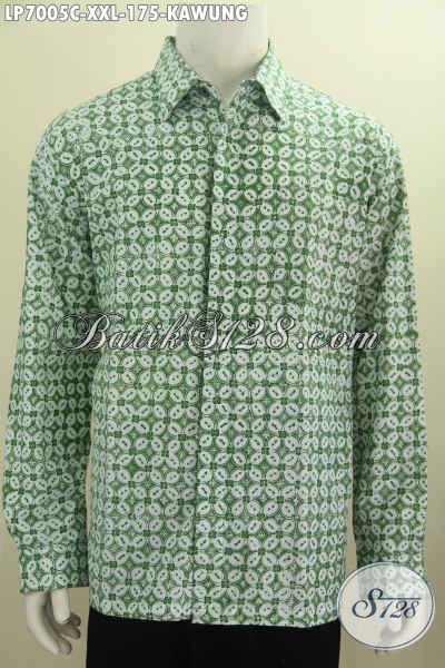 Hem Batik Klasik Warna Hijau Non Furing Model Lengan Panjang Motif Kawung Proses Cap Ukuran XXL Buat Lelaki Gemuk [LP7005C-XXL]