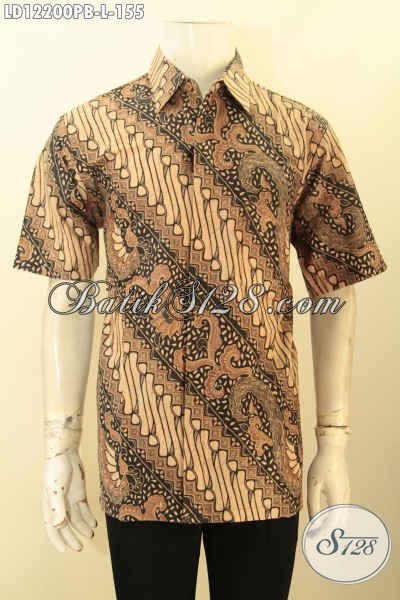 Hem Batik Kondangan Lengan Pendek, Pakaian Batik Solo Halus Motif Klasik Printing Cabut, Tampil Gagah Berkelas, Cocok Juga Untuk Acara Resmi [LD12200PB-L]