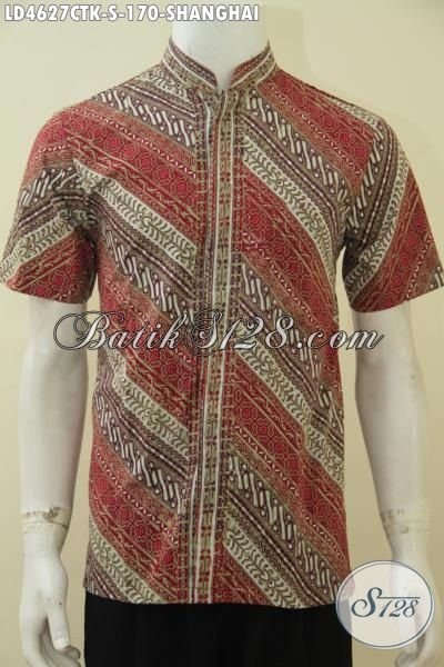 Hem Batik Lebaran Terbaru, Baju Batik Gaul Model Kerah Shanghai, Baju Batik Muslim Proses Cap Tulis Untuk Remaja Pria Tampil Trendy [LD4627CTK-S]