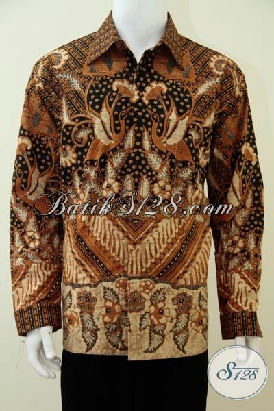Hem Batik Lengan Panjang Dasar Coklat Motif Klasik, Baju Batik Formal Untuk Kerja Dan Rapat [LP2623BTF-XL]