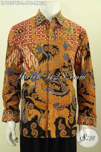 Hem Batik Lengan Panjang Motif Naga, Baju Batik Solo Premium Proses Tulis Daleman Full Furing, Elegan Buat Kerja Dan Kondangan [LP9807TF-L]