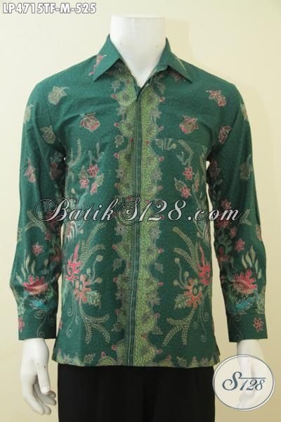 Hem Batik Lengan Panjang Warna Hijau Bermotif Mewah, Busana Batik Full Furing Spesial Buat Pria Karir Sukses, Proses Tulis Tangan Asli [LP4715TF-M]