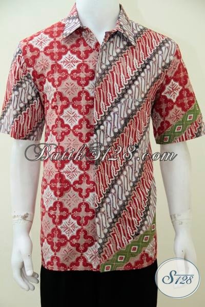Hem Batik Lengan Pendek Dengan Kombinasi Dua Motif Unik Dan Warna Keren, Baju Batik Pria Muda Untuk Tampil Lebih Ceria [LD2572CT-L]