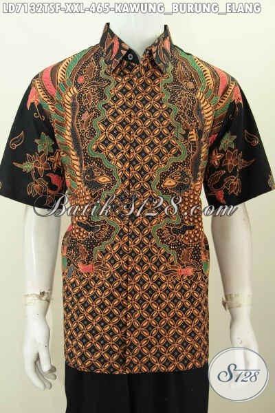 Hem Batik Lengan Pendek Mewah Motif Kawung Burung Elang, Baju Batik 3L Proses Tulis Tangan Daleman Pakai Furing Tampil Lebih Istimewa [LD7132TSF-XXL]