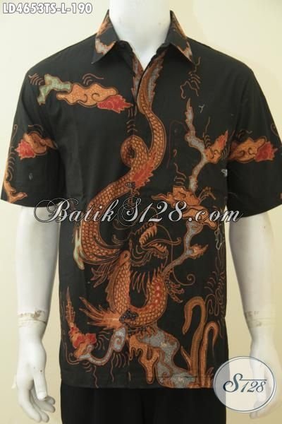 Hem Batik Lengan Pendek Motif Naga, Baju Kerja Batik Size L Proses Tulis Soga Lebih Halus Dan Adem Nyaman Di Pakai Sehari-Hari [LD4653TS-L]