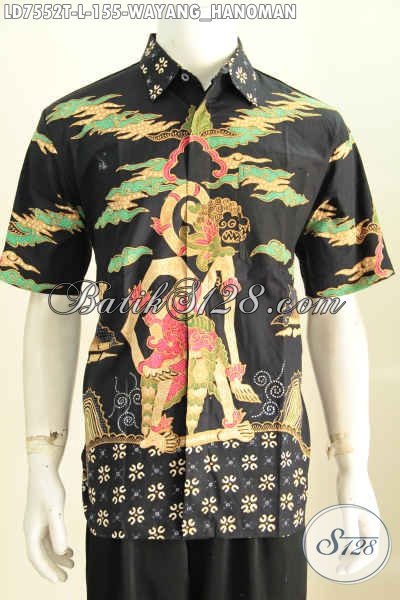 Hem Batik Lengan Pendek Motif Wayang Hanoman, Busana Batik Solo Halus Proses Tulis Tampil Lebih Mempesona [LD7552T-L]