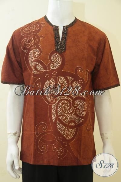 Hem Batik Lengan Pendek Warna Coklat, Busana Batik Tulis Kerah Shanghai Buatan Solo Kwalitas Premium Pas Buat Gaul [LD4331TK-M]