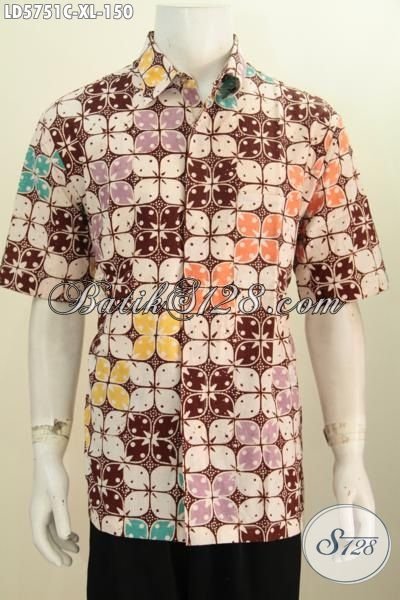Hem Batik Lengan Pendek Warna Keren Motif Unik Proses Cap, Baju Batik Jawa Khas Kawula Muda Cocok Juga Untuk Pria Dewasa [LD5751C-XL]