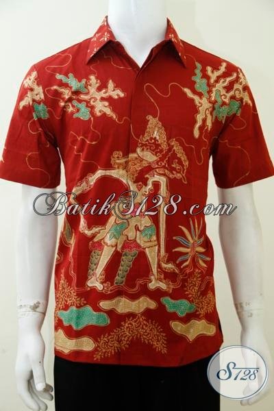 Hem Batik Lengan Pendek Warna Merah Keren, Baju Batik Wayang Antasena (Putra Bima) Hadir Dengan Proses Tulis Untuk Tampil Trendy Berkelas [LD2962T-M]