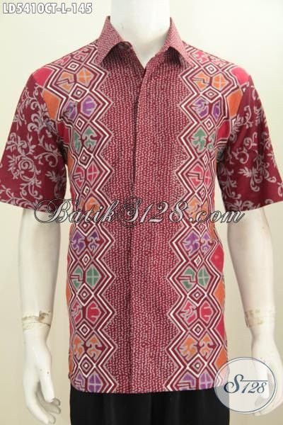 Hem Batik Merah Bahan Halus Motif Trendy Kwalitas Istimewa, Pakaia Batik Cowok Lengan Pendek Proses Cap Tulis Untuk Kerja Dan Jalan-Jalan [LD5410CT-L]
