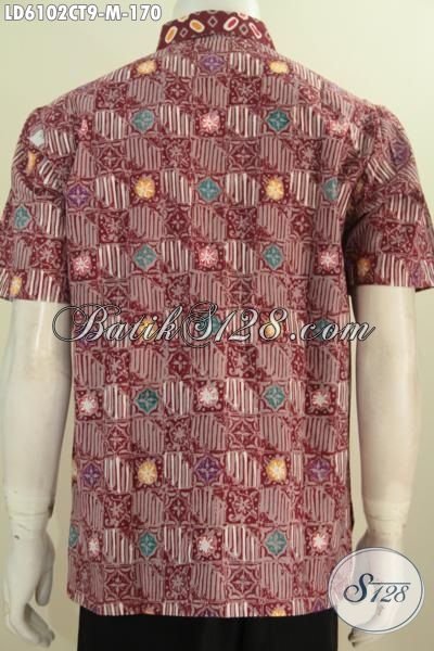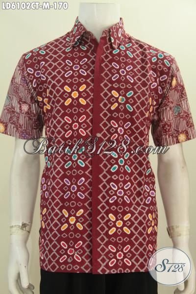 Hem Batik Merah Kombinasi Dua Motif, Baju Batik Lengan Pendek Non Furing Bahan Halus Proses Cap Tulis Size M Bikin Lelaki Muda Tampil Keren Dan Tampan Maksimal [LD6102CT-M]