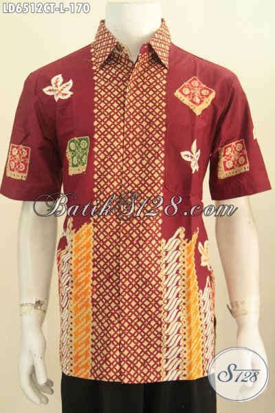 Hem Batik Merah Ukuran L, Pakaian Batik Modis Halus Proses Cap Tulis Model Lengan Pendek Untuk Penampilan Lebih Keren Dan Istimewa [LD6512CT-L]