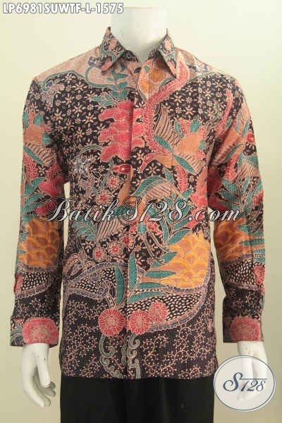 Hem Batik Mewah Buat Pejabat, Berbahan Halus Sutra Twist Motif Terkini Proses Tulis Tangan Asli Desain Lengan Panjang Pakai Furing, Pas Untuk Rapat [LP6981SUWTF-L]