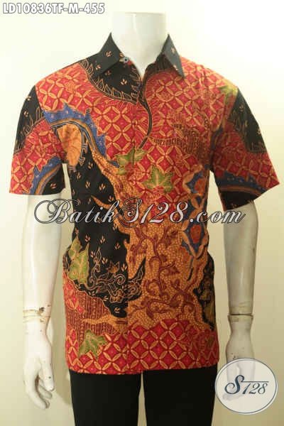 Hem Batik Mewah Pria Lengan Pendek 400 Ribuan, Kemeja Batik Premium Pake Furing Motif Tulis Asli, Penampilan Lebih Gagah Dan Berkelas [LD10836TF-M]