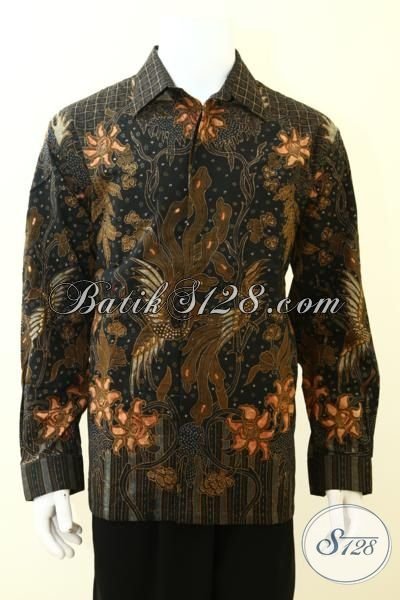 Hem Batik Mewah Warna Gelap Motif Klasik Proses Tulis, Baju Batik Premium Lengan Panjang Untuk Seragam Kerja Pria Sukses [LP3493TF-XL]