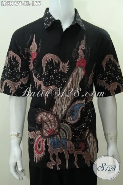 Hem Batik Modern Khas Solo Jawa Tengah Berbahan Halus Motif Unik Proses Tulis, Baju Batik Cowok Terkini Model Lengan Pendek Pas Buat Gaul [LD5097T-XL]
