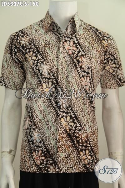Hem Batik Modis Lengan Pendek Halus Dan Istimewa, Baju Kemeja Modern Klasik Motif Parang Bunga Keren Proses Cap Untuk Pesta Dan Kerja Kantoran [LD5337C-S]
