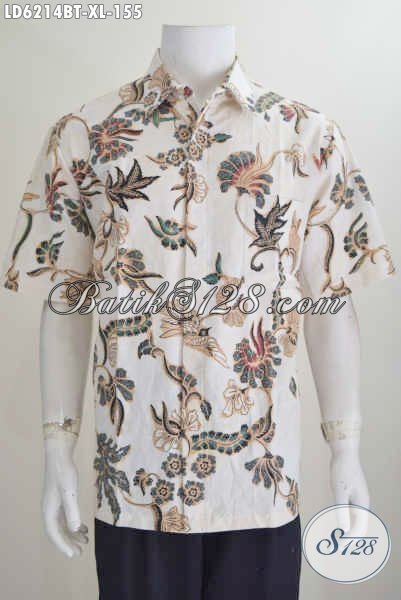Hem Batik Modis Motif Bunga Dasar Warna Pastel, Kemeja Batik Keren Bahan Adem Proses Kombinasi Tulis Untuk Kerja Dan Hanghout [LD6214BT-XL]