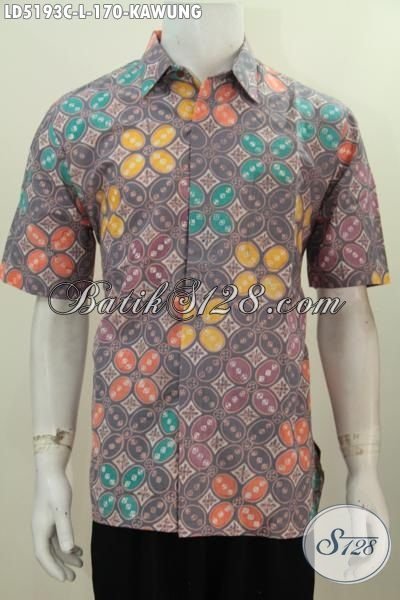 Hem Batik Modis Motif Kawung Model Lengan Pendek, Berbahan Batik Cap Asli Solo Kwalitas Mewah Harga Murah Tampil Tanpa Celah [LD5193C-L]
