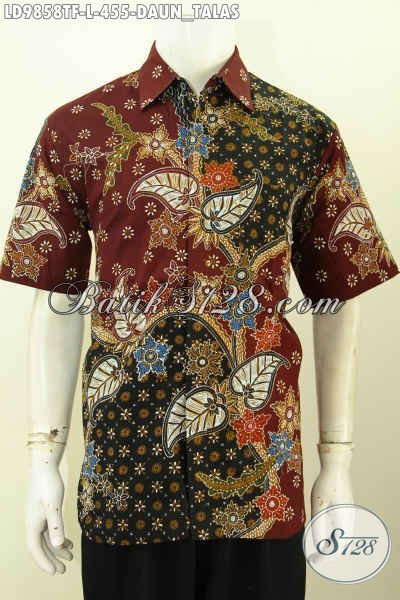 Hem Batik Motif Daun Talas, Kemeja Batik Jawa Etnik Keren Full Furing Model Lengan Pendek, Pas Untuk Kek Kantor [LD9858TF-L]
