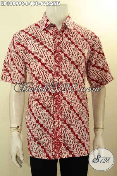 Hem Batik Motif Parang Warna Merah, Busana Batik Solo Halus Lengan Pendek Proses Cap Kwalitas Istimewa, Cocok Buat Kerja Dan Pesta Harga 130K [LD10899C-L]