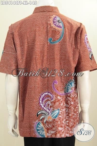 Hem Batik Orange Dengan Kwalitasa Istimewa Model Lengan Pendek, Baju Batik Trendy Khas Solo Proses Cap Tulis Untuk Penampilan Makin Modis Dan Stylish [LD5414CT-XL]