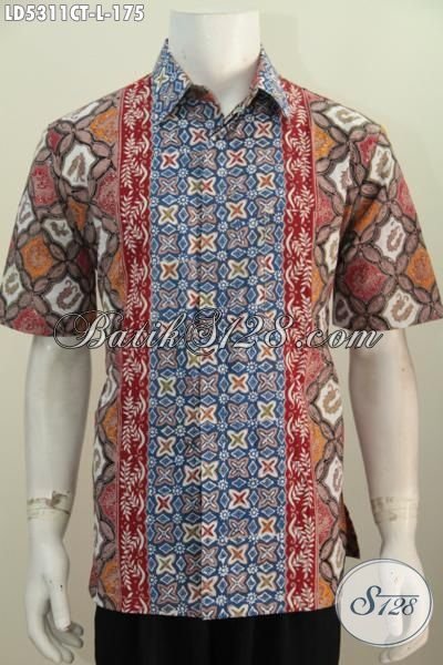 Hem Batik Paling Keren Untuk Menunjang Penampilan Pria Macho, Busana Batik Lengan Pendek Motif Kombinasi Proses Cap Tulis Motif Unik Trend Terkini [LD5311CT-L]