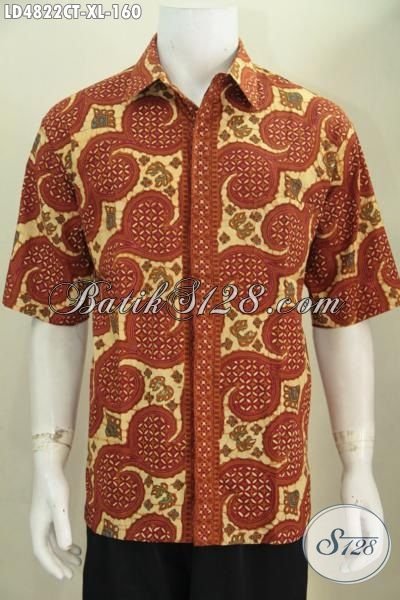 Hem Batik Paling Trendy Motif Unik Proses Cap Tulis, Pakaian Batik Lengan Pendek Merah Tampil Gagah Dan Mewah [LD4822CT-XL]