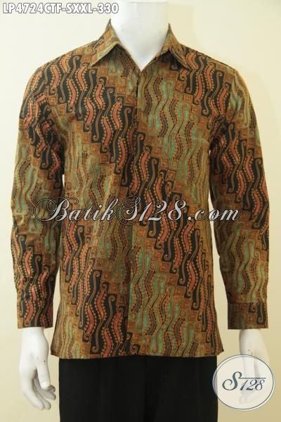 Hem Batik Parang Proses Cap Tulis, Baju Batik Elegan Kwalitas Mewah Daleman Full Furing Model Lengan Panjang Cocok Untuk Rapat Dan Acara Formal [LP4724CTF-S , XXL]