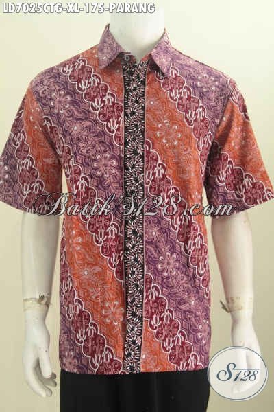 Hem Batik Pria Dewasa, Batik Kerja Lengan Pendek Kwalitas Halus Motif Parang Ukuran L Proses Cap Tulis Gradasi [LD7025CTG-XL]